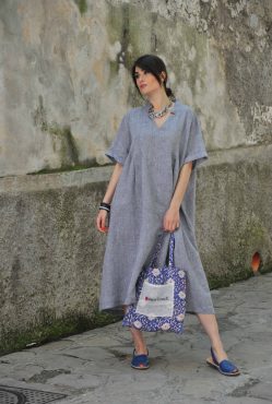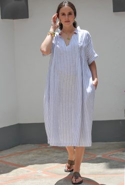 «Torna alla collezione Fiamma Abito 100% lino Abito lungo con mezza manica e scollo a "V". Realizzato in versione righe e in tinta unita in diversi colori. Richiedi informazioni sul vestito