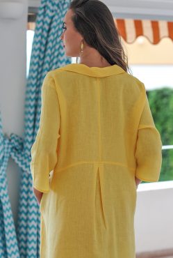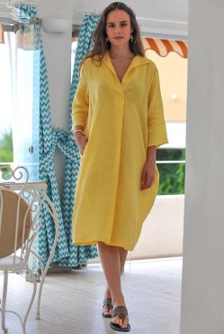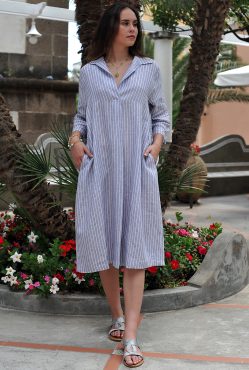 «Torna alla collezione Nada Abito 100% Lino Abito con scollo a "V", lunghezza sotto al ginocchio, manica 3/4 e tasche laterali a scomparsa. Disponibile in lino sia in tinta unita che in versione righe e in cotone fantasia. Richiedi informazioni sul vestito